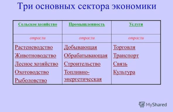Согласно трехсекторной макроэкономической теории, существует три основных сектора экономики — первичный, вторичный и третичный.