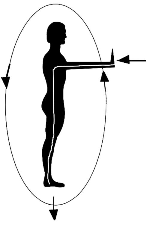 Существуют две принципиально различные техники Фаерболла: прямой и обратный круги движения энергии внутри физического тела. Прямой круг также называют даосским (рис. 2 а). Это понятие связано с биоэнергетикой, с проведением энергий по меридианам. Не вдаваясь в подробности теории меридианов, можно сказать, что в человеческом теле проходят два главных меридиана (энергетических канала), которые соединяются между собой и образуют кольцо, проходящее посередине нашего тела. Парные меридианы, образующие систему линий, расположенных параллельно главному кругу; энергетические каналы рук и ног – несколько меридианов, проходящих по рукам и ногам; передний и задний серединные каналы – все это образует энергетическую схему человека. Каналы рук и ног соединяются с главным кольцом в области плечевого сустава и в области крестца.