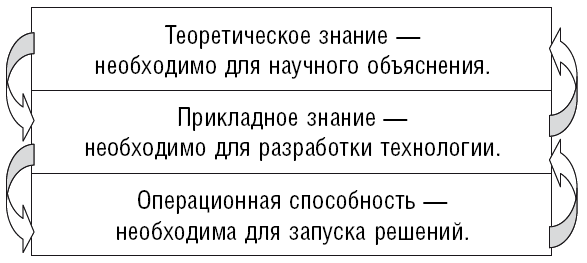 Взаимное влияние этих двух видов знаний очевидно, поскольку достижения в сфере технологий способствуют развитию научных теорий, а последние, в свою очередь, улучшают оперативные возможности. Однако здесь важно обратить внимание на тот факт, что человек, занятый Решением проблемы, в процессе своего вмешательства отказывается от теоретического/научного «знания» и прибегает к логическому/технологическому «умению». Бертран Рассел учит нас, что для выполнения строгих процедур необходимо иметь разные «логические уровни».