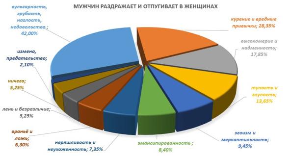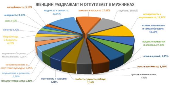 Теперь рассмотрим, что женщин напрягает в мужчинах, отталкивая их? Узнаем это в процентном соотношении: