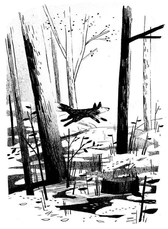 Но этим утром он бежал не как всегда. Этим утром лис бежал, потому что под упругой лесной подстилкой, под клочьями снега в глубокой сосновой тени, под каймой льдинок в каждой луже он чуял весну. Новая жизнь взбегала по веткам, по коре, по извилистым ходам внутри земли — и как ещё мог он откликнуться на этот бег жизни? Только бежать.