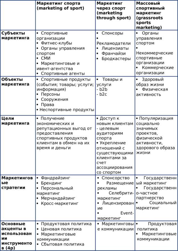 Такой подход помогает рассматривать спортивную индустрию как единый комплекс, а кроме того, облегчает использование маркетинговых стратегий и инструментов.