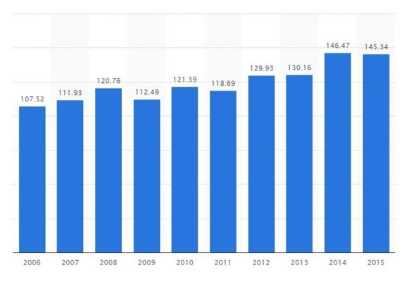 Спорт давно уже стал международным культурным явлением, воплощением социальных ценностей, патриотизма, успеха и славы. А еще — серьезной отраслью экономики, год от года набирающей обороты. Сегодня в сферу спортивной индустрии во всем мире вовлечены миллионы людей, тратящих и зарабатывающих миллиарды долларов. По данным портала statista.com суммарные доходы от спонсорства, продажи билетов, мерчандайзинга, медиаправ составили в 2015 году $145,34 млрд (рис.1.1).