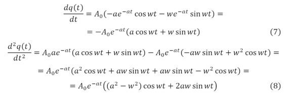 Решение дифференциального уравнения (5), будем искать в форме (6), по причине учёта модели в форме затухающих электромагнитных колебаний.
