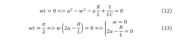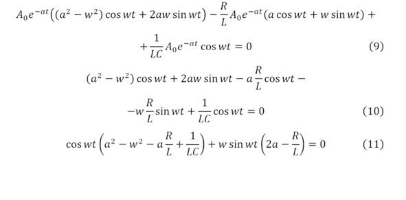 Из (13) стало очевидно, что циклическая частота затухающих колебаний не могут быть равны нулю, откуда становиться очевидным формула для степенной константы в формуле затухающих электромагнитных колебаний (14) и которая может быть подставлена в (12).