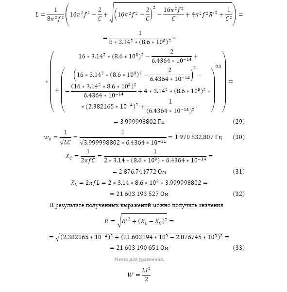 Определяемое сопротивление необходимо по причине невозможности использования классического выражения формулы Томпсона и выражение для частоты может быть определена из (22), откуда согласно с предыдущими выводами выводится результирующее биквадратное уравнение.