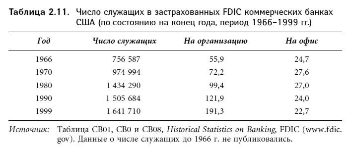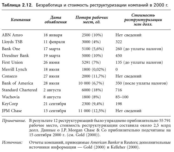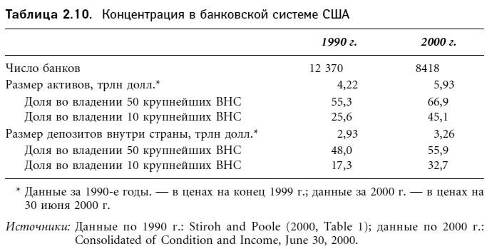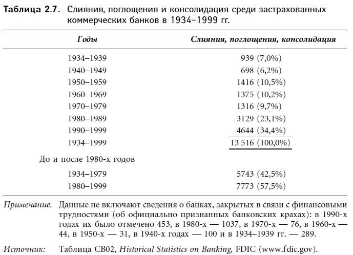 а) Консолидация может привести к более высокой продуктивности банковского обслуживания. В то же время затраты на слияние делают увеличение прибыли весьма недолговечным. «Бум» слияний скоро достигнет апогея и пойдет на убыль, хотя бы потому, что проведение такой сделки станет чересчур дорогим. В последнее время банки готовы были покупать друг друга за цену, вдвое превышающую балансовую стоимость, хотя недавно преобладал коэффициент 1,5. В конце концов все больше банков окажутся никому не нужны.