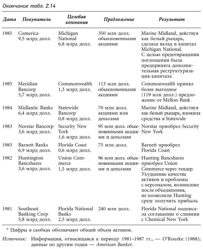 NCNB и C&S/Sovran. В 1989 г. NCNB предприняло попытку враждебного поглощения C&S, заставившую компанию искать спасения под крылом Sovran. Очевидно, потому, что C&S едва ли примет предложение NCNB с распростертыми объятиями. Напомним, однако, что в свое время сделка C&S/Sovran была слегка «омрачена» известием о слабости принадлежащего Sovran портфеля кредитов на коммерческую недвижимость в штате Вашингтон. Business Week высказался в пользу слияния NCNB и C&S/Sovran, называя транзакцию великолепным шансом объединить 2 тыс. офисов от Балтимора до Крайнего Запада. Как известно, NCNB имеет большое влияние в Техасе.