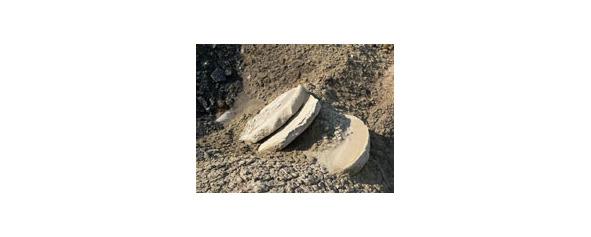Россия, поселок Богучанка, Иркутская область, шары похожи на металлические [51]. Их возраст, не менее 60 миллионов лет. Первое место находится в Усть-Илимском районе Иркутской области на одном из каменноугольных разрезов. Исследование этих найденных артефактов начали в 2010 году. Первым, кто вытащил тему усть-илимских шаров на поверхность, стал региональный отряд местного Космопоиска. Об этом месте стало известно благодаря жителю поселка Карапчанка Анатолию Короткову. Проезжая мимо разреза на своём УАЗике он не поленился погрузить 300-килограмовый шар в кузов и отвез его домой, попутно прихватив и ещё один шар поменьше. Один каменный шар он установил в своём огороде, чем вызвал небывалый интерес у сельчан. Малый шар Анатолий Петрович отдал в краеведческий музей города Усть-Илимска. Отмечается почти идеальная шарообразная форма этого артефакта. Каменные шары имеют неестественно странные формы «природных конкреций» и обладают аномальной плотностью. На разрезе помимо сферических камней были найдены две полусферы точно разрезанного шара. Также встречались геометрически правильные сектора, а также таким же образом ровно порезанный на дольки шар и даже их отпечатанные на каменной плите двухмерные проекции — рис. 3. Порезанные шары, а это именно такое впечатление и производило, были явлением сугубо местным и не имели описанных аналогий в мире.
