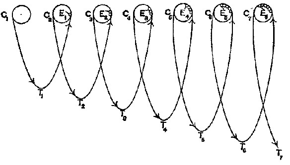 Do not fail to observe in this connection the following two facts. One of them is that the magnitude of the terms of any geometric progression whose ratio (no matter how small) is 2 or more will overtake and surpass the magnitude of the corresponding terms of any arithmetical progression, no matter how large the common difference of the latter may be. The other fact to be noted is that the greater the ratio of a geometric progression, the more rapidly do its successive terms increase; so that the [pg 018] terms of one geometric progression may increase a thousand or a million or a billion times faster than the corresponding terms of another geometric progression. As any geometric progression (of ratio equal to 2 or more), no matter how slow, outruns every arithmetic progression, no matter how fast, so one geometric progression may be far swifter than another one of the same type.