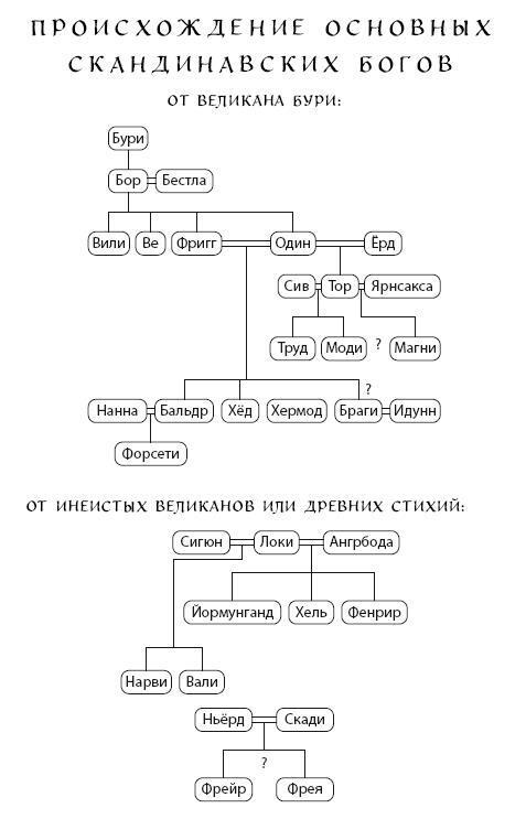 Бури в это время тоже не терял времени даром: он породил на свет нескольких детей – каким именно способом, достоверно неизвестно, – и его сын Бор женился на инеистой великанше по имени Бестла. От брака Бестлы и Бора родились дети – боги-асы, в числе которых были Вили, Ве и Один. Если имя последнего часто упоминается в древних источниках, то о его братьях известно очень мало и сведения о них крайне запутанные. В общем-то это легко объяснимо – любая мифология с течением времени трансформируется, обогащается новыми представлениями о мире и человеке. И например, Ве иногда представляют просто как одну из ипостасей Одина. Другие же источники, как, скажем, «Сага об Инглингах», упоминают о том, что Вили и Ве помогали Одину управлять миром, а значит, представляли собой все же самостоятельных персонажей.