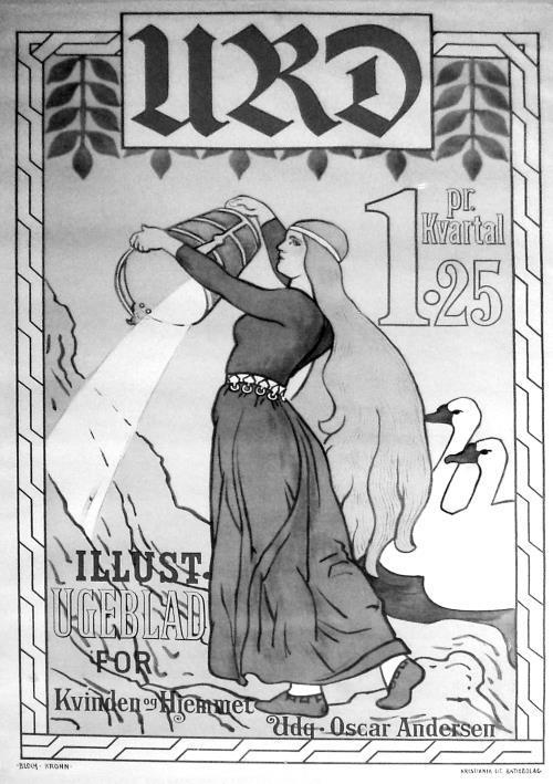 Обложка журнала «Урд» с изображением норны, поливающей Иггдрасиль водами из источника мудрости, 1897 г.