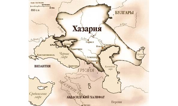 Богатства этой страны привлекали внимание многих соседних народов и, в первую очередь, иудеев. В ходе сложной политической борьбы при дворе, евреям удалось сделать иудаизм государственной религией, подчинить верхушку правящей знати и переженить ее на своих дочерях. Мать кагана Буллаха обрезала сына по иудейскому обряду и, став царем, он правил под именем Сабриэля. От его связи с Серак родился Обадия, который, в свою очередь, подверг иудейскому обрезанию всех придворных. Так евреи нашли свою новую «землю обетованную», где никто их не притеснял, где они имели реальную власть, благодаря которой они сделали эту землю центром мировой торговли.