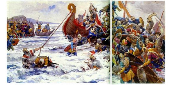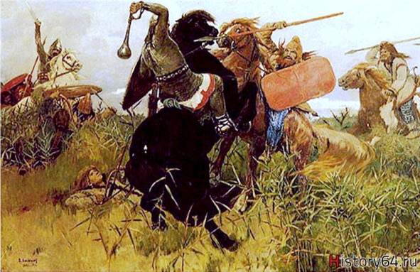 В 971 году Святослав совершил свой последний поход на Византию, когда на одного русского солдата приходилось десять греческих. Взяв победу в этом тяжелейшем бою, возвращался Святослав домой, и на Днепровских порогах, в самом их узилище, ждала его, нанятая греками печенежская засада. Передовой отряд Святослава был перебит лучниками. Сам князь, с небольшим отрядом сумел выбраться на берег и, приняв бой, погибнуть с оружием в руках. Из черепа этого великого война печенежский хан Куря заказал себе чашу и оправил ее в золото. Хан часто хвалился ею перед гостями, пил из нее кумыс и вино, он считал, что таким образом ему передается смелость и удача русского князя.