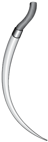 2. Тело: изогнуто по пологой дуге или прямое; поперечное сечение трехгранное, с режущей кромкой, обращенной кнутри (выгнуто-режущее).