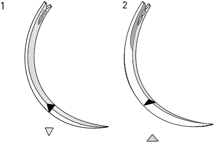 Рис. 9. Выгнуто-режущая (1) и вогнуто-режущая (2) иглы
