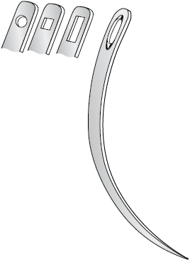 Закрытое ушко соответствует таковому у обычной швейной иглы и имеет овальный, круглый, прямоугольный или квадратный просвет (рис. 5). Иглы с таким ушком используются для шва сухожилия.