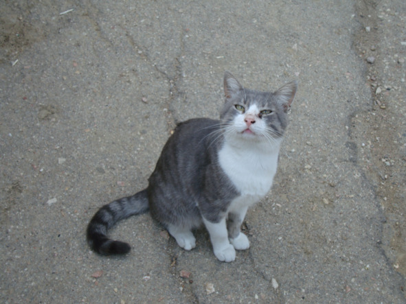 Ехали они, ехали… Видят: на дороге сидит пушистая серая кошка.