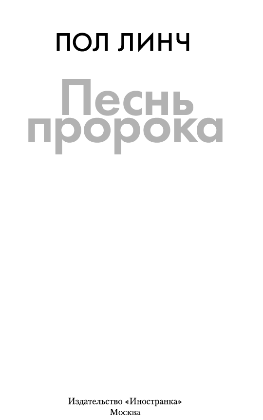 Песнь пророка : роман / Пол Линч ; пер. с англ. М. Клеветенко. — М. : Иностранка, Азбука-Аттикус, 2024. — 400 с. — (Большой роман).