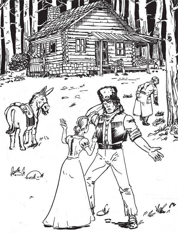 – Это кто тебе сказал, что мы хотели? – взвилась она. – Выйти за тебя, после того как ты поколотил моего отца и братьев? Ты что, вообразил себя лучшим парнем на всей Медвежьей речке? Ха! Сдался ты мне со своими кожаными штанами, ржавым револьвером и енотовой шапкой! Выйти за тебя? А ну, полезай на своего вшивого мула и убирайся отсюда, пока я тебя дробью не разукрасила!