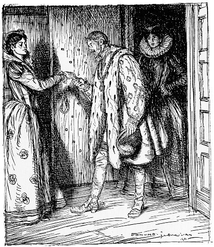 “Yes,” said the king, “your eyes are fine. I am constrained to concede that much, and if I do not wed you myself it is but right I should nominate a candidate for your hand. There is a friend of mine for whom I shall use my influence with Francis and your father that they may persuade you to marry him. He is young Talbot, Constable of Falaise, a demented stripling who calls you the Pearl of France. Ah, now the colour comes to your cheeks. I would not have believed it. All this demureness then——” But the girl had sunk at his feet, grasped his hand and pressed it to her lips.