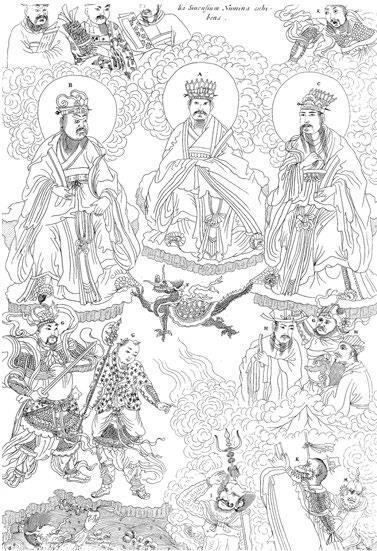 Боги Китая. Копия старинной гравюры, перепечатанная А. Кирхером. 1667 г.