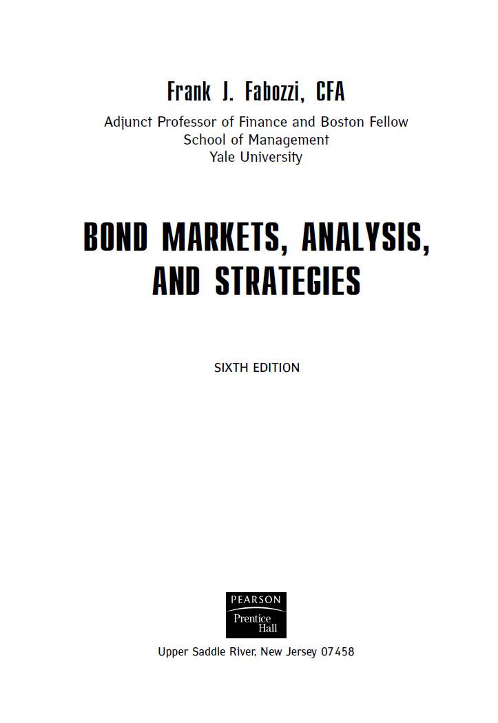 Первое издание книги Bond Markets, Analysis and Strategies (Рынок облигаций: анализ и стратегии) было опубликовано в 1989 году. Цель книги — описание финансовых инструментов облигационного рынка, аналитических методов оценки облигаций и их чувствительности к изменениям процентных ставок, а также портфельных стратегий, отвечающих различным инвестиционным целям. В последующих трех изданиях и в настоящем издании каждая тема, затронутая в первом издании, была уточнена и дополнена. В части книги, посвященной финансовым инструментам, дополнения в основном касались новых видов ипотечных ценных бумаг, а также ценных бумаг, обеспеченных активами. В части аналитических методов был дополнен материал, посвященный оценке облигаций со встроенными опционами, а также методам определения риска процентных ставок для сложных финансовых инструментов. В каждом издании также был уточнен и дополнен материал, посвященный стратегиям достижения определенных инвестиционных целей, особенно с использованием производных инструментов.