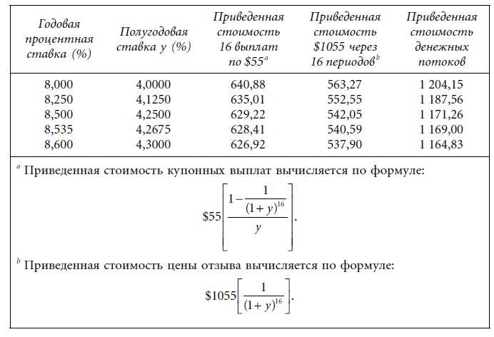 Предположим также, что облигация может быть продана эмитенту в единственную дату через пять лет с настоящего времени, а ее доходность к первому отзыву по номиналу составляет 8,535%. Какова доходность к наихудшему этой облигации?