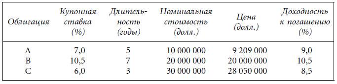 В главе 4 мы вводим понятие дюрации. Довольно верное приближение доходности портфеля может быть получено при использовании дюрации для взвешивания доходностей к погашению отдельных облигаций, входящих в портфель.