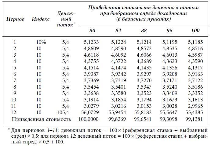 Подробнее об этих мерах спреда доходности см. Frank J. Fabozzi, Steven V. Mann, Floating Rate Securities (New York: John Wiley & Sons, 2000), глава 3.