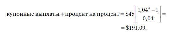e. Вычислите величину процента на процент при условии, что полугодовые купонные выплаты могут быть каждые шесть месяцев реинвестированы под 4,5%; заметим, что результат должен быть тот же, что и в пункте d.