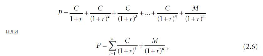 В главе 2 мы писали о том, почему цена облигации, не имеющей встроенных опционов, может быть выражена в виде формулы[18]: