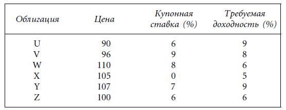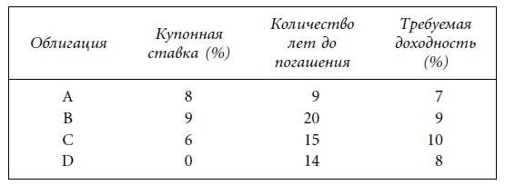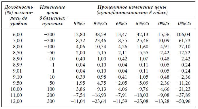 Таблица 4.2. Мгновенные процентные изменения цен шести гипотетических облигаций