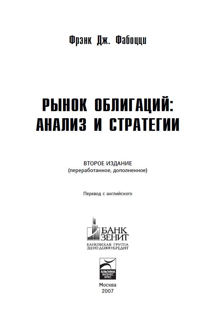 Рынок облигаций: Анализ и стратегии. 2-е изд., испр. и доп. / Фрэнк Дж. Фабоцци; Пер. с англ. — М.: Альпина Бизнес Букс, 2007.