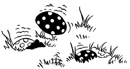 Пикник был в самом разгаре, когда Фрэнни заметила кое-что странное. Она разглядывала лужайку и чуть не ахнула, когда поняла, что земля как будто вспухает. Девочка пригляделась и через мгновение удивлённо увидела, как, вспоров траву, из-под земли выросли шесть кочек.