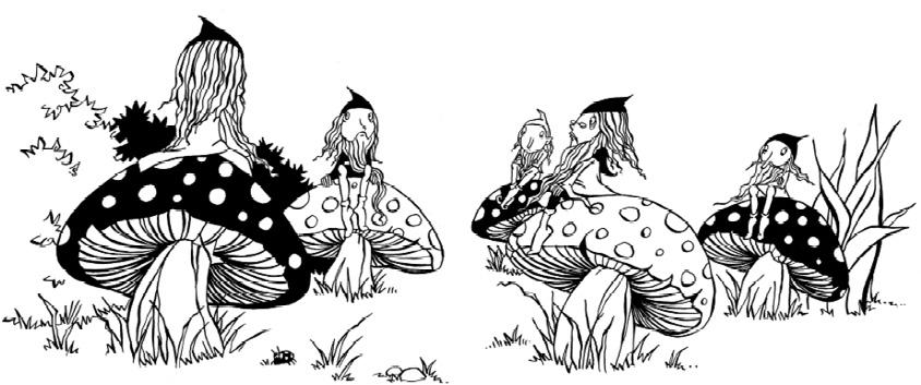 От испуга эльфы аж подпрыгнули на своих грибах, а гном, схватив сумку, помчался прочь.