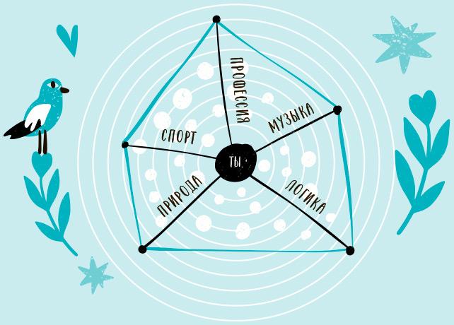 Я предлагаю тебе пока просто зарядку для ума, а не профессиональный психологический тест. Попробуй перечислить 20, 30, а может быть, 50 пунктов, которые отразят стороны твоей личности. Пиши даже то, что пока не похоже на будущую профессию. А потом представь, что весь этот длинный список — твой «гардероб», в котором умещается столько разных воплощений. И всё это — ты!