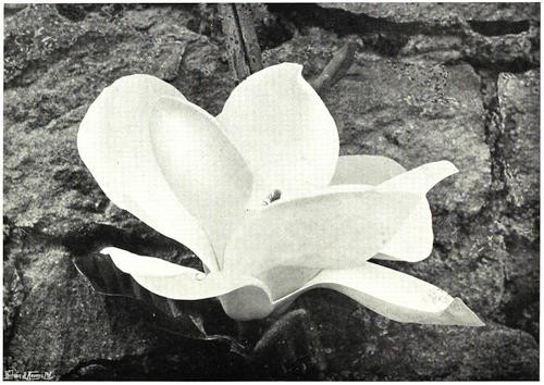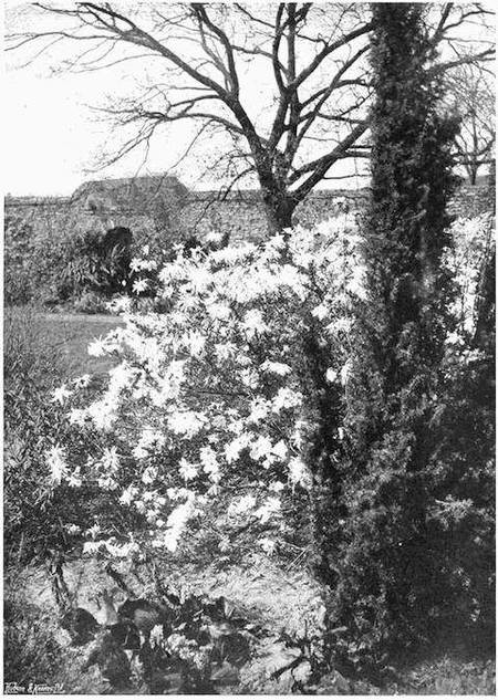 The Hidden Garden is so small in extent, and its boundaries are already so well grown, that there is no room for many of the beautiful things of the time of year. For May is the time for the blooming of the most important of our well-known flowering shrubs—Lilac, Guelder Rose, White Broom, Laburnum, and Pyrus Malus floribunda. But one shrub, as beautiful as any of these and as easily grown, seems to be forgotten. This is Exochorda grandiflora—related to the Spiræas. Its pearl-like buds have earned it the name of Pearl Bush, but its whole lovely bloom should before now have secured it a place in every good garden.