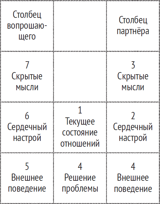 Этот расклад используется, если требуется определить, как к вам относится какой-то человек, и понять, что вы на самом деле чувствуете к нему.