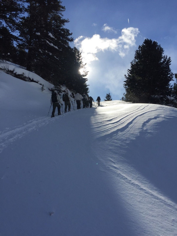 Как и положено, все построились и произвели счет группы. Я крикнул: «26-ой!», а последний закончил счет 51-м. Мы все знали, что, в случае чего, нас пятьдесят один человек. Прошли контроль аппарата поиска пострадавших в лавине (этот аппарат — маленькая машина, которая помогает искать другое такое же устройство под снегом), и такое мини-оборудование было пристегнуто у каждого из нас на груди. К девяти часам, мы, закончив все подготовительные меры безопасности, начали восхождение. Все шло по плану: лежал чистый, свежий снег, настроение у всех было хорошее, а вид на величественные Альпы настолько впечатлил нас, и такие бушующие эмоции были, что просто взрывало мозг, как новогодний салют.