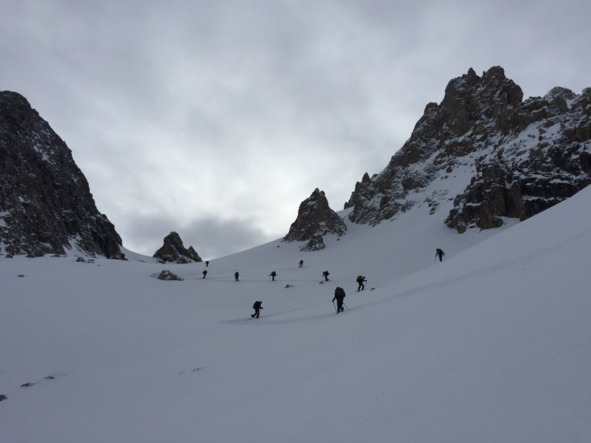 Прошел еще немного, и чуть выше послышался шум. Стало понятно, что кто-то не справился с лыжами. Чуть позже мы увидели, как понесло вниз Давида Этени (молодой венгр, испытывавший трудности в горах). Все засмеялись. Кто-то крикнул: «Подними свой зад и давай вперед!» Далее следовали парни из России и Латвии. Вместе посмеялись над какой-то шуткой и продолжали движение вперед. Все шло, как и планировалось. Вроде стали уставать, но подбадривали друг друга.