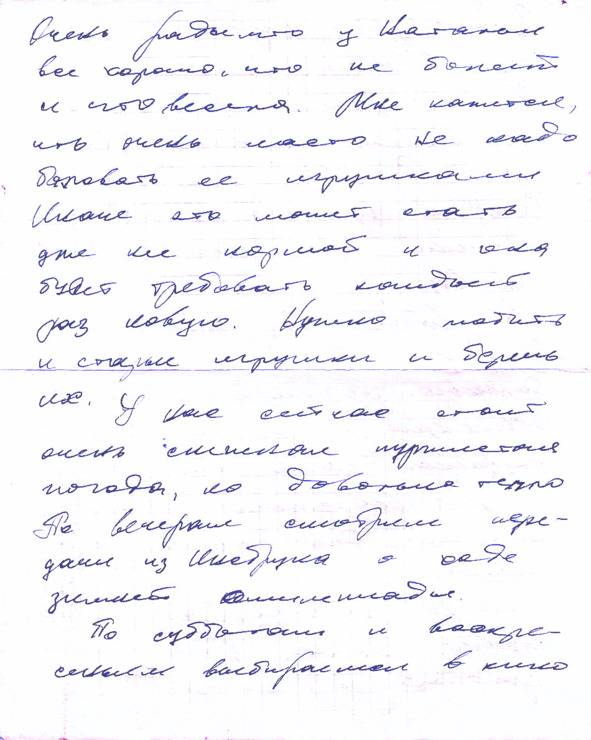 Для Сильвии, когда она пошла в школу, выделили самую маленькую комнату в доме, в которой вначале была детская кровать, этажерка, специальный ученический стол с электролампой, приделанный к стене, со складной плоскостью для размещения тетрадей и книг и круглый винтовой стул. В этой комнатке она делала домашние задания и наполняла ее своими фантазиями. Когда Сильвия подросла, ей купили тахту, торшер и две навесных полки для книг. Впоследствии в своей комнатушке она изучала институтские дисциплины. Записка от Сильвии лежала на столе. Игнат развернул ее и прочел: «Игнат, извини, что не дождалась, пока ты приедешь. Но надо спасать нашего ребеночка. Появились неприятные чувствительные схватки. Наверное, переволновалась, готовясь к экзамену. Пришлось лечь в отделение патологии беременности. До встречи!»