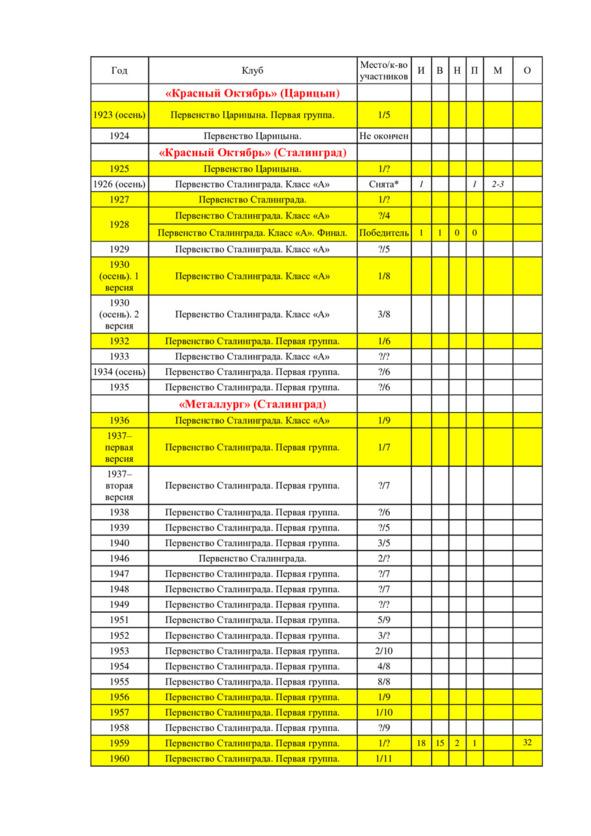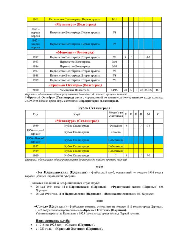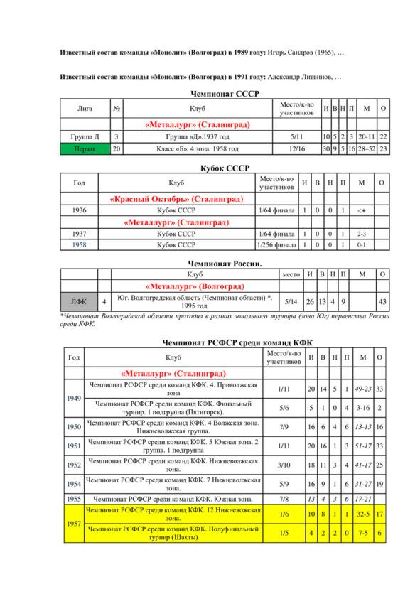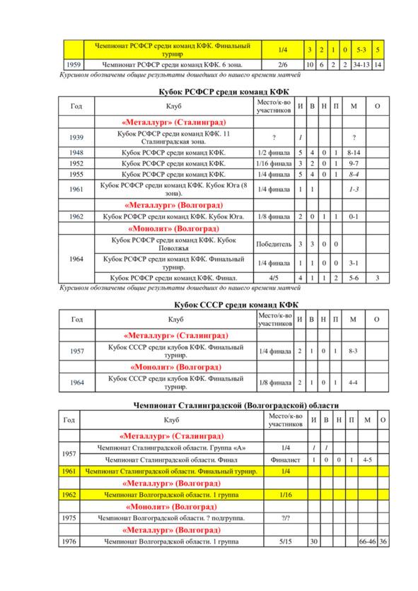 В истории региона много команд, которые боролись за высокие места — среди них: «Ротор» (Волгоград), «Текстильщик» (Камышин), «Торпедо» (Волжский), «Звезда» (Городище). Некоторые команды продолжают свою историю до сих пор, а это значит, что региональная статистика будет дополняться победами на футбольном поприще.