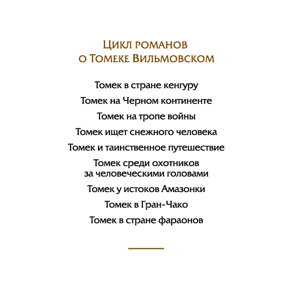 На историях о бесстрашном Томеке Вильмовском, вышедших из-под пера польского писателя Альфреда Шклярского, выросло не одно поколение юных любителей книг. Перед вами второй роман из этого цикла — «Томек на Черном континенте», перевод которого был заново выверен и дополнен интересными и познавательными научно-популярными справками. Замечательные иллюстрации к книге создал художник Владимир Канивец.