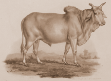 Быки в тесном смысле этого слова, к которым принадлежит крупный рогатый скот, составляют особую группу. Они отличаются широким плоским лбом, большими рогами и короткой густой шерстью. <...> ...в Древнем Египте и Индии уже в ранние времена существовали различные породы домашнего скота. Впоследствии некоторые из них совершенно исчезли или изменились до неузнаваемости, другие, наоборот, сохранили все свои существенные признаки. К последним принадлежат горбатые быки: ...индийский зебу (Bos indicus), рыжевато- или серовато-бурого цвета, переходящего иногда в бледно-желтый и даже белый. (А. Брэм. Жизнь животных, т. 1.)