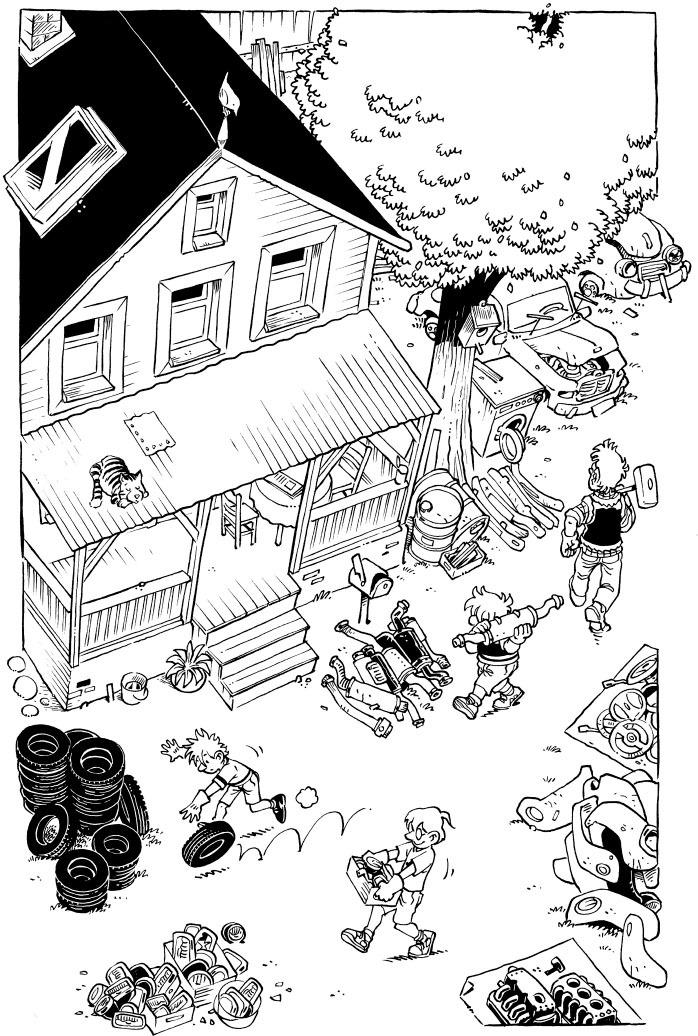 Юстус вытащил пару старых рулевых колёс из горы металлолома и посмотрел вверх. Самый проницательный из друзей с пяти лет жил с дядей Титусом и тётей Матильдой. Его родители погибли в результате несчастного случая, и Юстус вырос бы в приюте, если бы родственники не взяли его к себе.