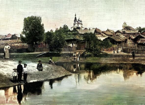 Чаусы на старинном фото. В этом беларуском небольшом городе родился Герой Советского Союза Лев Ефимович Маневич. Фото покрасила М. Акулич