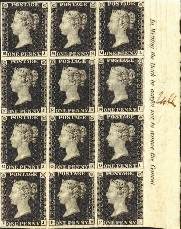 Чтобы защитить первые марки от подделки, а также облегчить подсчеты проданных экземпляров, их снабдили буквами в нижних углах. Ни на одной марке в листе буквы не повторялись. Лист состоял из 240 миниатюр: 20 рядов по 12 марок. Почему столько? Всё просто: ряд – это шиллинг, лист – фунт стерлингов. Нумерация или, если хотите, «литерация» шла по рядам сверху вниз – A, B, C, D и так далее – и по месту марки в каждом ряду. Так и возникали комбинации букв: например, АА, RA, CF, SE. Последняя марка в листе имела обозначение TL. Такая же классификация была и у второй марки мира – синего двухпенсовика.