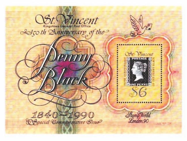 Интересно, что 150-летний юбилей «Черного пенни» вдохновил почтовые администрации разных стран мира на издание марок и почтовых блоков, на которых в литерах зашифровано название государства. Так, на марке и блоке Сьерра-Леоне воспроизведен юбиляр с литерами SL – это реально существующий «Черный пенни». А вот Сент-Винсенту, а также Сент-Винсенту и Гренадинам пришлось допустить ошибку, поставив на своем выпуске нелегитимные литеры SV.