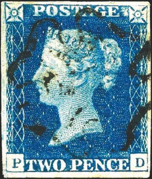 Англия, 1840 г. Гашеный «Синий двухпенсовик»
